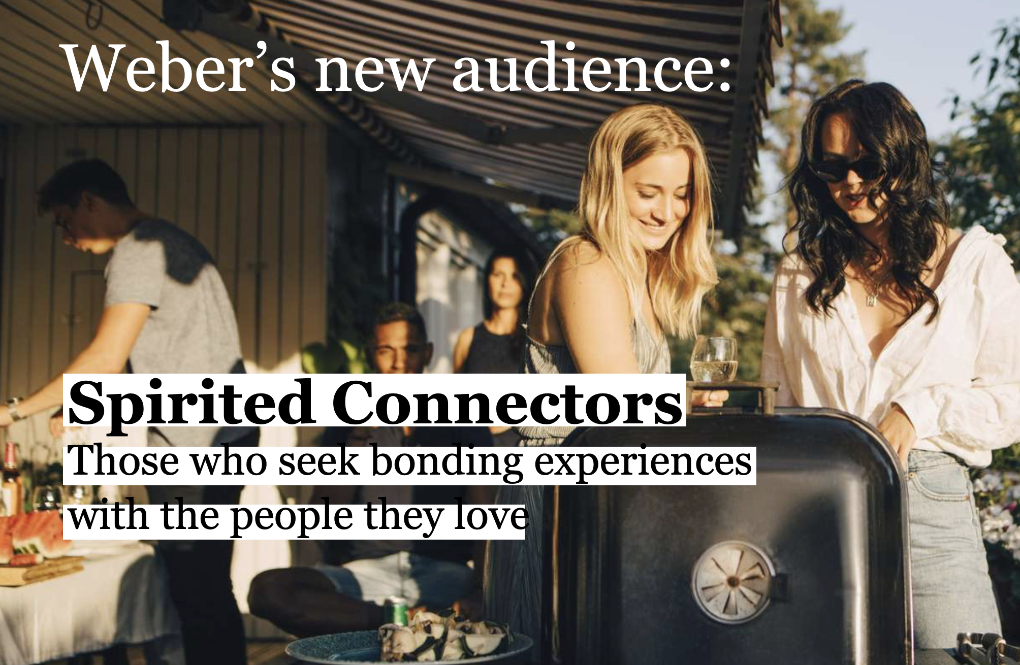 To grow, Weber must move beyond the middle-aged male demographic and embrace "Spirited Connectors", a psychographic audience focused on bringing people together through shared experiences.